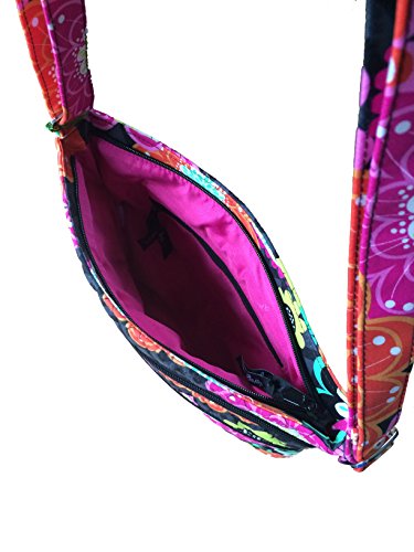 The Hipster is the ultimate cross-body bag. And with Vera Bradley's Triple Zip Hipster there are three separate zippered compartments to provide plenty of room to keep keys, phone and other necessities secure. There is even an interior zippered pocket within the main compartment and an open slip pocket accents the back. It has a fully adjustable shoulder and cross-body strap. It measures approximately 11.5 inches (L) x 11.5 inches (H) x 2 inches (W). Machine wash cold, gentle cycle, only non-chlorine bleach if needed and line dry. Patterns with solid color interiors are generally designed for Vera Bradley Outlet stores. Their Outlet versions do not have the two inner slip pockets within the front zippered pocket.Feature