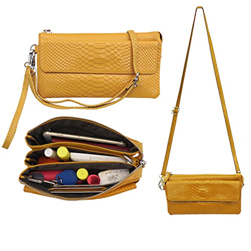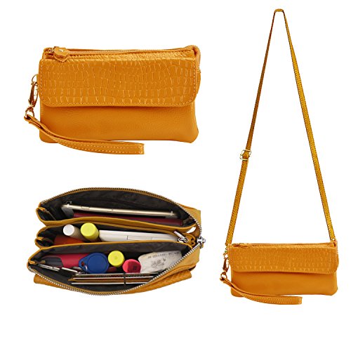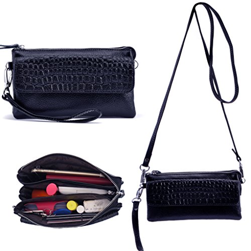 Shalwinn Women's Genuine Leather Crossbody Purse Shoulder bag Cellphone Pouch Purse Wristlet Wallet Clutch with Long Shoulder Strap and Wrist Strap About The Material: Material: Cow split leather