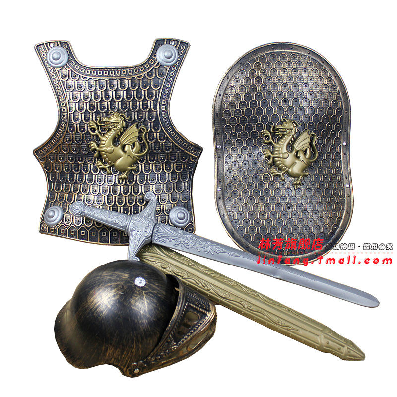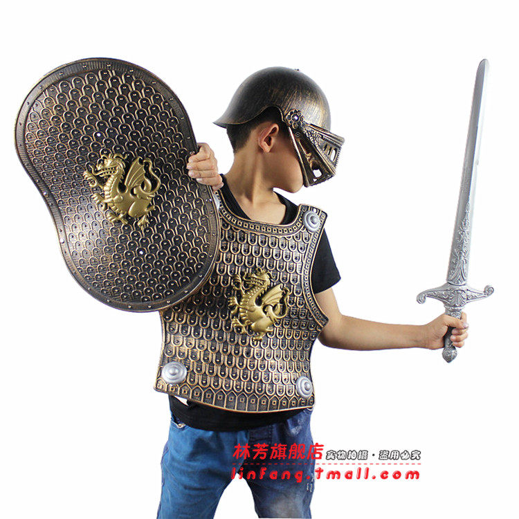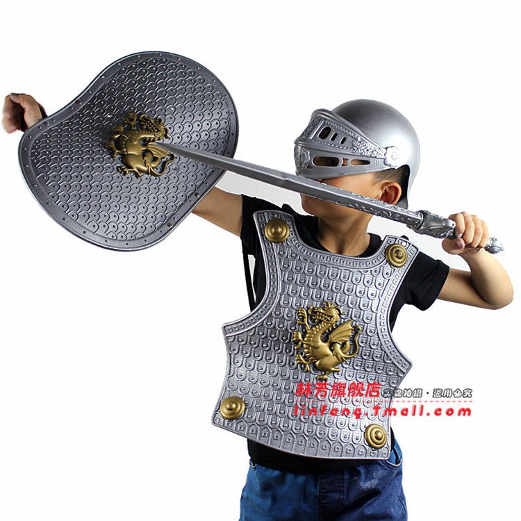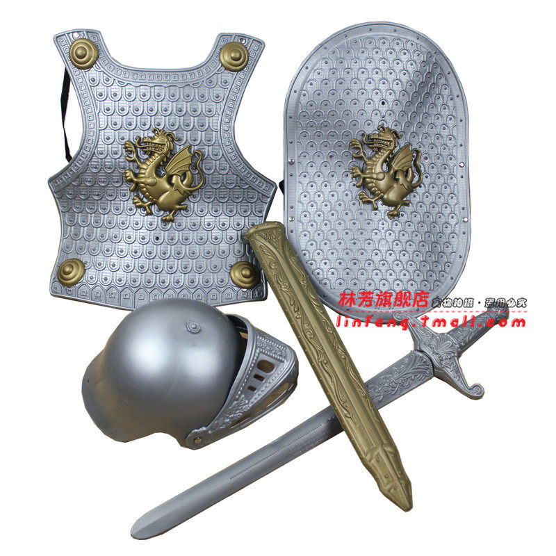 Brand: Lin Fang Name: 4 sets of armor in children Product content: sword armor shield hat Material: plastic Size: 34 cm wide and 29 cm long breastplate, shield 40 cm long 26 cm wide, 58 cm long sword In fact, no matter how old can wear, only small pictures show Daxian, 1.3 meters Note: this clothing helmet for fragile goods, in the express process is very easy to fracture, a little crack is normal, do not affect the use, please carefully consider the buyer before the shoot.