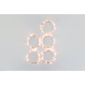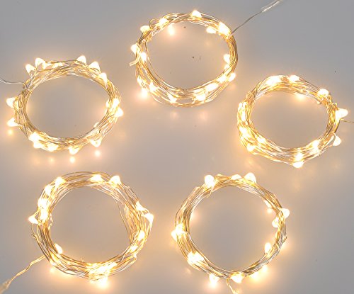 Improved Design with Timer Set of 5 Micro LED 20 Warm White Lights Battery Operated on 7ft Long Silver Color Ultra Thin String Wire, 6 hours on/18 hours off