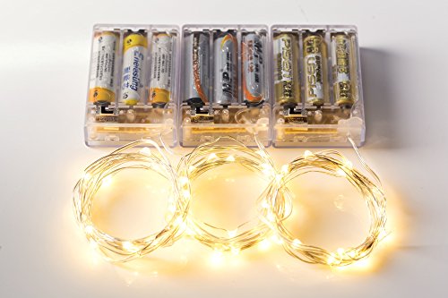 - The sliver coating is build on urltra slim thin copper wire. 7' Total Length with 12'' Clear Cable Lead between wire and battery, 4'' Distance Between LED Bulbs. Requires 3 AA Batteries (Not Included). Timer function: 6 hours on, 18th hours off.
