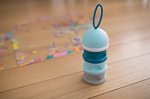 BEABA Formula & Snack Container, 3 compartments with Funnel and Carry Handle, Peacock