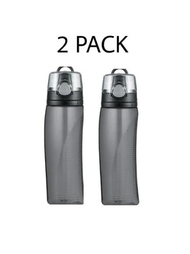 Thermos Intak Hydration Bottle is made from BPA free, impact- resistant, dishwasher durable Eastman Tritan copolyester. It has a locking leak-proof lid with one-hand push button operation. Theres a flip up loop for easy carrying; ergonomic design for comfortable usage. Monitor your intake with the rotating intake meter- perfect if you are trying to get those 8 glasses of water in everyday. Ideal for water, iced tea, juices and sports drinks: 24-ounce capacity.