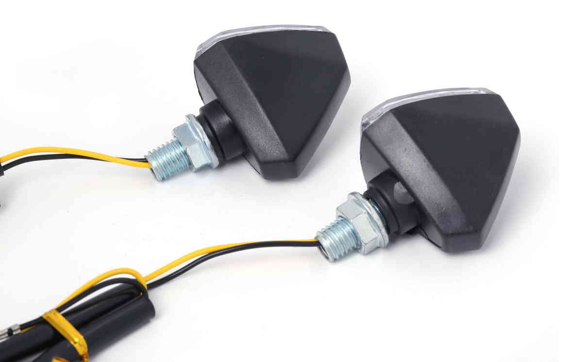 ・コンパクトなスポーティー三角形デザインの汎用LEDウインカー左右セット