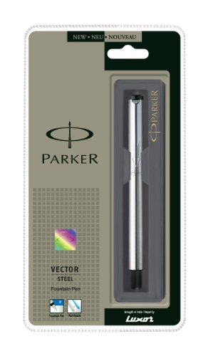 -. Binding : Office Product -. Brand : Parker -. Feature : If you buy more than $50, the shipping fee will be FREE / Smooth stainless steel cap & barrel with matching stainless steel or chrome plated clip.Full steel body for extra durability. • Fitted with fine stainless steel nib • Fitted with twin-channelled ink feed and collector system. • For use with ink cartridges or convertible to ink bottle filling. / Seal in Pack 100% -. Label : parker -. Manufacturer : parker -. Model : 9000013673 -. PackageQuantity : 1 -. ProductGroup : Office Product -. ProductTypeName : WRITING_INSTRUMENT -. Publisher : parker -. Studio : parker -. Title : BEST P.R.ICE Parker Vector Stainless Steel Chrome Accents Fountain Pen