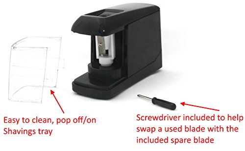 ☆ SAVES YOU TIME. It is easy to clean and sharpen. Pop off cover allows quick and easy empty and clean. There is a spare blade included and attached to the inside of the battery compartment for easy storage. There is also an included mini screwdriver to change the blade.