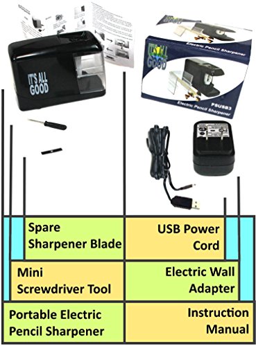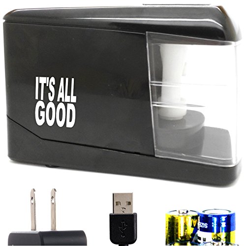 PORTABLE ELECTRIC PENCIL SHARPENER - Battery, Plug-in, or USB power. Includes power adapter! Durable Small Lightweight Powerful Safe. Great for home office, arts & craft, teachers, kids, and school.