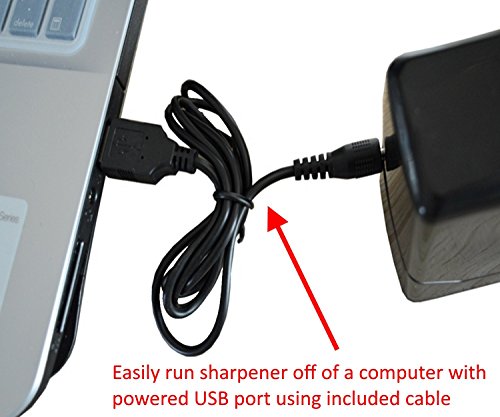 ☆ YOU GET MORE with three power options. Powered either with an INCLUDED wall outlet, a computer with powered USB port (not included) or 4 AA batteries (not included). You choose on the go! Quieter than other electric pencil sharpeners and great for classrooms.