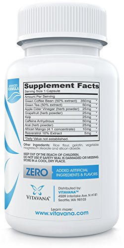 -. Title : Ultra GCB Green Coffee Bean Extract Diet Pills with Green Tea Extract, African Mango, Apple Cider Vinegar, Kelp, Acai Berry, Resveratrol, Grapefruit and Caffeine Anhydrous (1130mg :: 60 Capsules)
