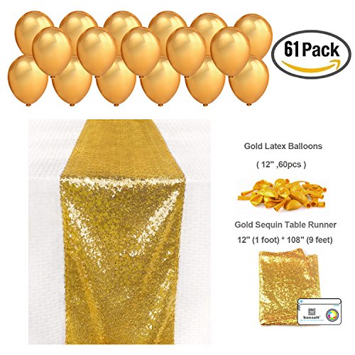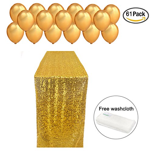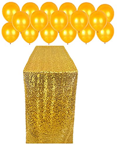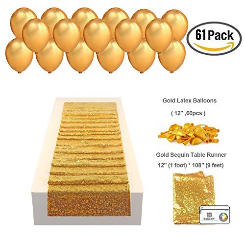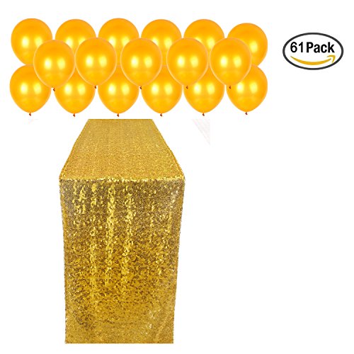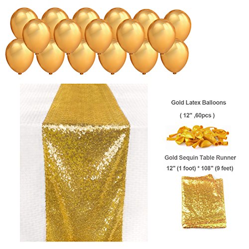 Package: 1 Sequin gold table runner * 1 2 Gold 12" party balloons * 60 0