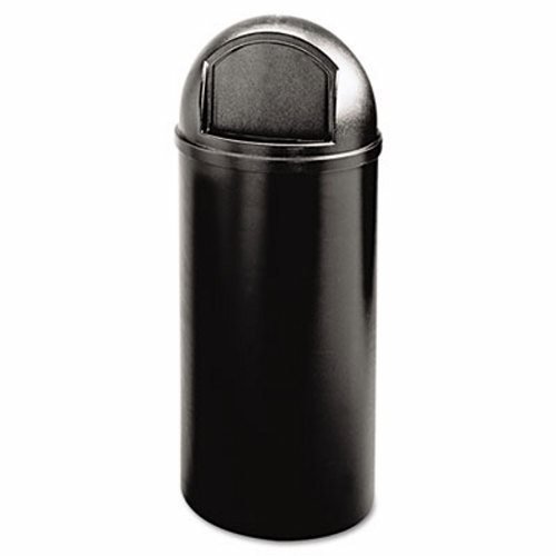 Product Description RUBBERMAID Marshal Single-Door Domed Receptacles will contain flame and even put them out under normal use. Features 1-piece design with hinged flip top for easy emptying. Built-in polyline bag holder straps. Ultraviolet inhibitor prolongs product life and helps to withstand outdoor sub-zero cold and hot summer heat. Structural web construction. FM-approved for fire safety. 0
