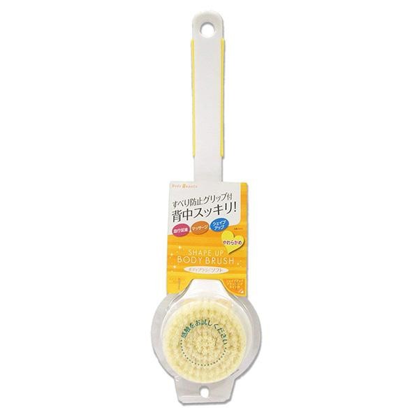 すべり防止グリップ付きで洗いやすいボディブラシです。ヌメリ・黒ズミ防止加工を施しています。 製造国:日本 素材・材質:本体:スチロール樹脂スベリ止め:TPEブラシ:アクリル 商品サイズ:(約)8.5×4×34cm 仕様:シェイプアップブラッシングガイド付 ※サプライヤー直送品 ご注文後3~4営業日後の出荷となります【商品名】BATH ボディケア Body Beauty BB ボディブラシ ソフト