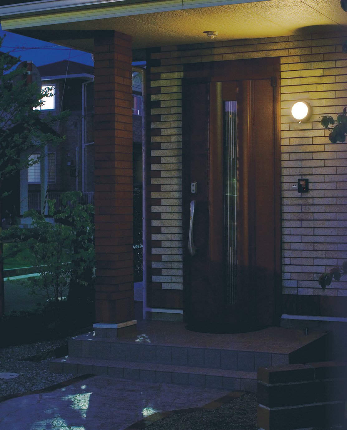 It glows swiftly when approaching, gently shines in front of the entrance
