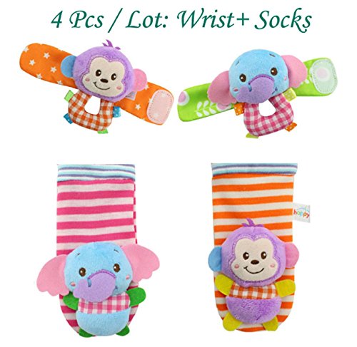 4pcs/lot Baby Toys Beads Bracelet Foot Baby Rattle Socks Garden Protect Wrist Animal