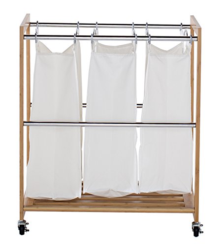 TRINITY 3-Bag Bamboo Laundry Cart, Chrome