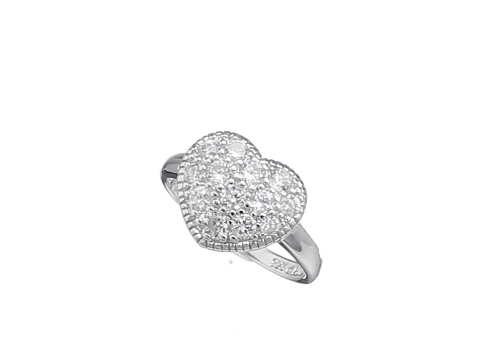 Sterling Silver Cubic Zirconia Heart Ring, Size 6