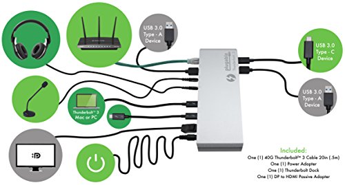 Plugable Thunderbolt 3 Docking Station for Late 2016 MacBook Pro and Dell Thunderbolt 3 Systems (No Host Charging, Supports Single HDMI or DisplayPort Monitor)