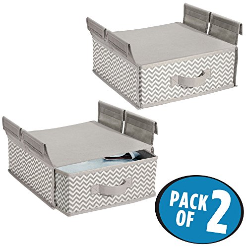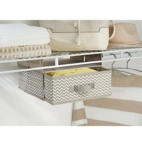 mDesign Chevron Fabric Hanging Closet Storage Organizer Drawer for Wire Shelving - Pack of 2, Taupe/Natural