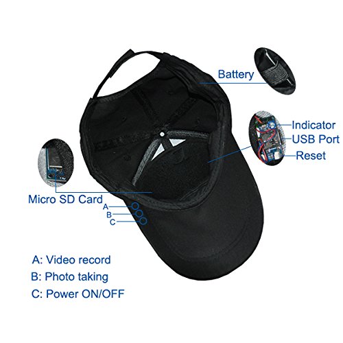 -. Binding : Electronics -. Brand : Ctronics -. EAN : 6044825946925 -. Feature : 1280*720P HD resolution / Video recoring with audio / Photo taking and HD video recording / Vibration pulses indicating photo taking and video recording / The cap camera are designed as a plug-n-play USB device.Making sure the device is powered off before connect to a computer with the supplied USB cable. -. Label : Ctronics -. Manufacturer : Ctronics -. Model : CT-CAP720P -. MPN : CT-CAP720P -. PackageQuantity : 1 -. PartNumber : CT-CAP720P -. ProductGroup : Photography -. ProductTypeName : SURVEILANCE_SYSTEMS -. Publisher : Ctronics -. Size : Spy Cap -. Studio : Ctronics -. Title : Ctronics Hidden Spy Cap HD Camera &720p Video Camera Recorder DVR 1280*720 Resolution 8G SD Card Built-in,Audio Recording