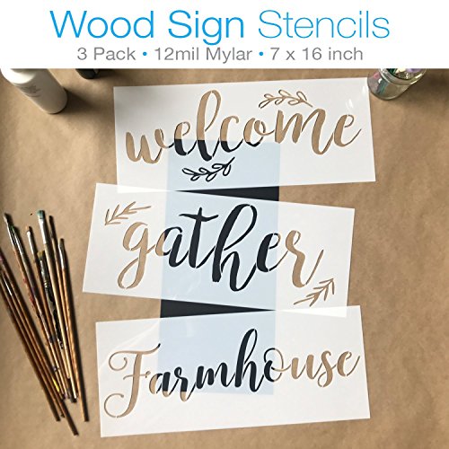 CALLIGRAPHY STENCIL SET - Gather, Welcome, Farmhouse Set | Each stencil measures 7x 16.5 inch