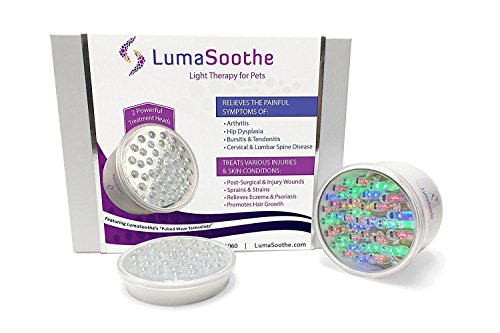 -. Feature : LUMASOOTHE IS A HOME-USE & non-invasive low level light therapy treatment device for your pet. Includes 2 Powerful Therapy Modules, Deep Treatment and Surface Treatment- a Safer alternative to Laser Light Therapy / DEEP TREATMENT BENEFITS FOR YOUR PET, provides pain relief for deep joint & muscle related issues such as Arthritis, Hip Dysplasia, back pain, sprains & strains. Reduces inflammation of skin, joints, vertebrae & muscle / SURFACE TREATMENT BENEFITS FOR YOUR PET, treats your pet's skin & surface conditions to promote healthy skin and aids in healing Wounds, Eczema, & Hair Loss / HOW IT WORKS, This process is similar to how plants use chlorophyll to convert sunlight into plant tissue, triggering cellular stimulation and treating damaged cell tissue / LUMASOOTHE LIGHT THERAPY FOR YOUR PET, is Easy to use, Portable, 15 Minute Automatic Treatment Timer, and an Ergonomic Design