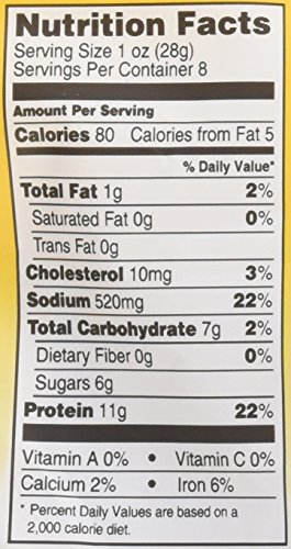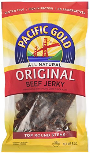 -. Feature : Delicious Pacific Gold Beef Kerky made from top round steak / Made with P.R.Ide in the USA / Two 8 ounce resealable bags to ensure freshness / No preservatives, no artifial ingreditnes, and 97 percent fat free / Good source of protein, 9 grams per serving