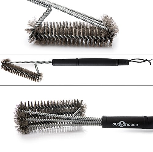 Grill Brush Barbecue Cleaner – 3-in-1 Stainless Steel, 18” Strong Grip Handle – BBQ Cleaning Made Easy for All Gas and Charcoal Grills – Perfect Barbecue present for Grilling by out and house
