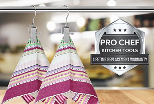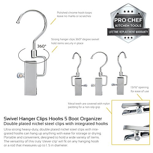 Pro Chef Kitchen Tools Stainless Steel Hanging Swivel Clip Hook - Set of 10 Swiveling Spring Clips with Hooks to Display Hang Boots, Caps, Hats, Laundry Hanger Metal Clothespin Clamps Replacement