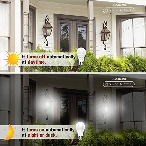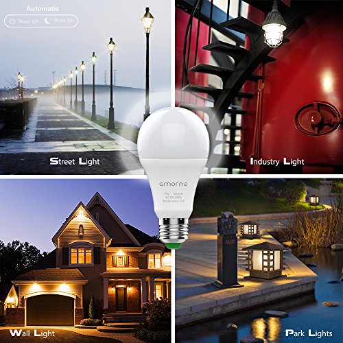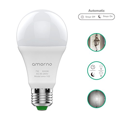 Dusk to Dawn light Bulbs,AMORNO 7W E26/E27 Smart Sensor Light Bulb with Auto on/off, Indoor / Outdoor LED Lighting Lamp for Porch, Hallway, Patio, Garage,Hallway(Cool White)