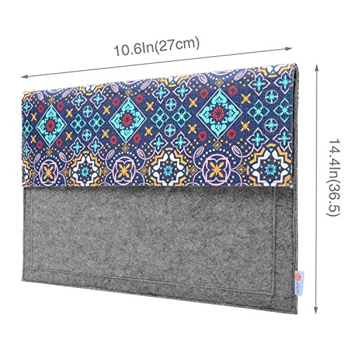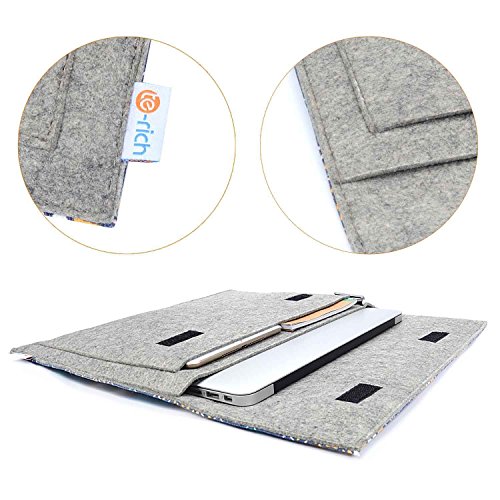 -. Binding : Electronics -. Brand : Te-Rich -. Color : grey -. Feature : The laptop sleeve with a main compartment, and a front smaller compartment for accessories like magazines, books, pens, paper document or small size tablets, the additional small felt bag for power adapter or mouse / High-quality felt and cloth exterior, soft suede interior for protection against scratching, and velcro closure for best security / Specifically designed for 12.9-13.3 inch laptops; Fits 13 inch MacBook Air / MacBook Pro and most 13 inch Ultrabooks and Netbooks / External Dimensions: 14.5" x 10.3" (LxH) / Internal Dimensions: 14.2" x 9.5" (LxH) -. Label : Te-Rich -. Manufacturer : Te-Rich -. Model : a1369 -. MPN : mba-13 -. PackageQuantity : 1 -. PartNumber : mba-13 -. ProductGroup : PC Accessory -. ProductTypeName : COMPUTER_COMPONENT -. Publisher : Te-Rich -. Size : 13.3 Inches -. Studio : Te-Rich -. Title : Te-Rich 13 Inch Macbook Air / Macbook Pro Retina / 12.9 Inch iPad Pro (Durable, Lightweight, Floral Design) Felt and Cloth Sleeve Case Cover Bag Protective Carrying Briefcase with Extra Pocket
