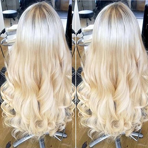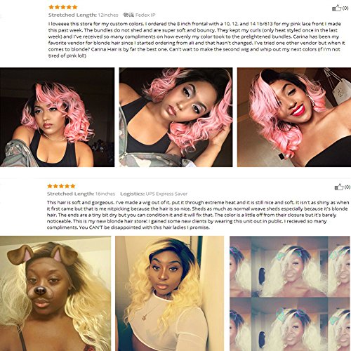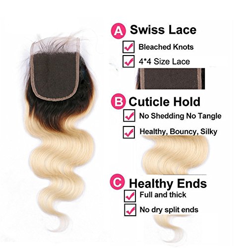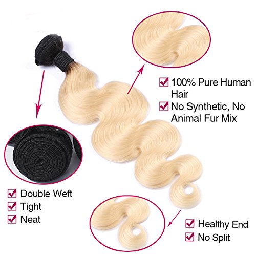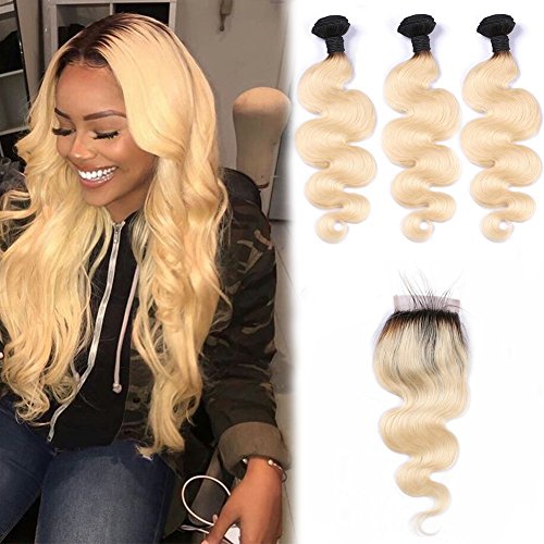 Brazilian T1b/613 Colored Two Tone 8A Hair Weave 3pcs With Closure Blonde Virgin Hair Dark Roots Ombre 613 Human Hair(16 18 20 with 14 Inch)
