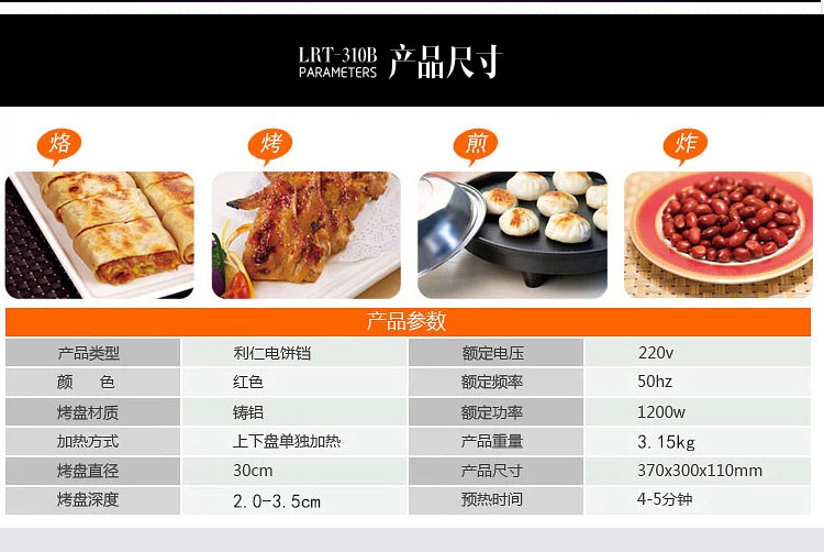 利仁电饼铛LRT-326A双面加热煎烤机家用煎饼锅蛋糕机烤饼机正品