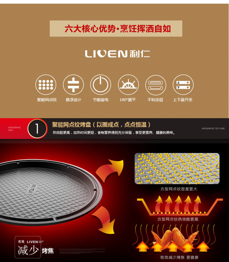 利仁电饼铛300HA家用蛋糕机全自动双面悬浮式烙饼锅华夫饼机