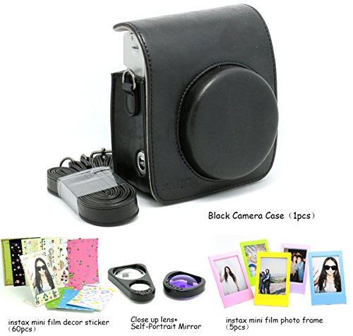 CAIUL 4 in 1 Fujifilm instax Mini 90 Camera Accessories Bundles (Included: Black Instax Mini 90 Case/ Instax mini 90 Close-Up selfie Lens/3 inches Colorful Film Frame/ Instax Mini Film Stickers)