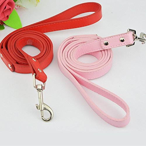 (Weimay)/Pet Supplies/Collars, Harnesses Leashes/DIRECT FROM USA/Weimay Leather Cute Dog Walking Leash 4 ft Long x 3/4" Wide Puppy Trainer Leash 4 Colors(Pink)