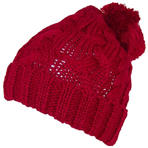 -. Title : Best Winter Hats Thick Cuffed Cable & Rib Knit Beanie W/Pom Pom (One Size)