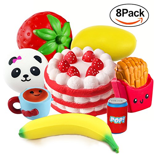 ?Product Features? Package Included: 8 pcs Squishy Toy. Material:Environmentally PU Foam. EASY TO CLEAN- These squeeze toys can be rinsed with water directly when they are dirty.