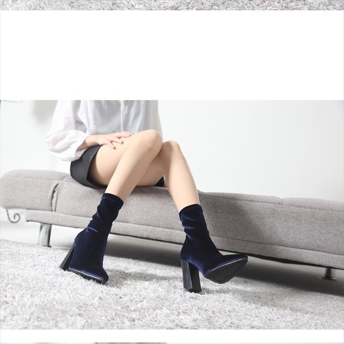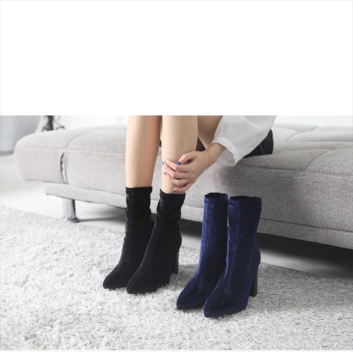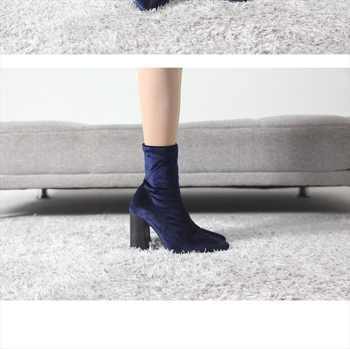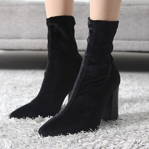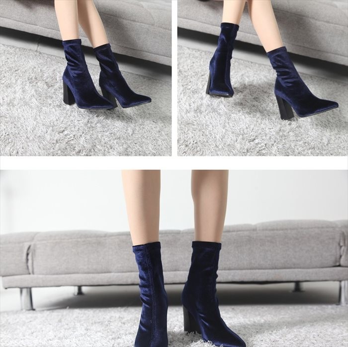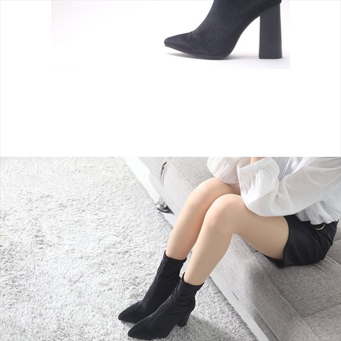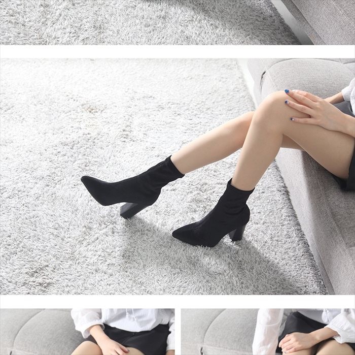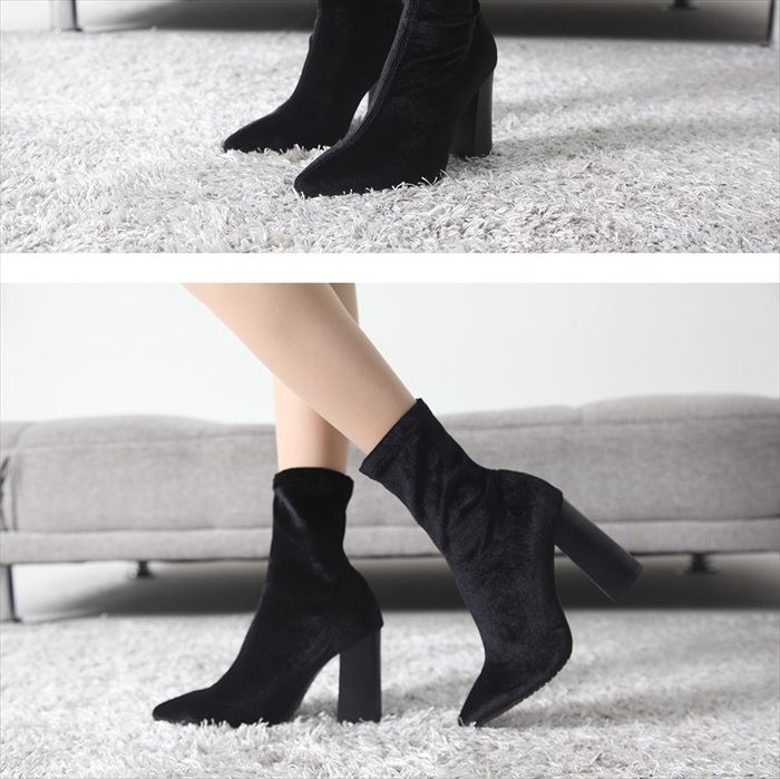 商品名:ストレッチブーツ レディース チャンキーヒール 太ヒール ポインテッドトゥ 2017 秋冬 ファッション 靴 婦人靴