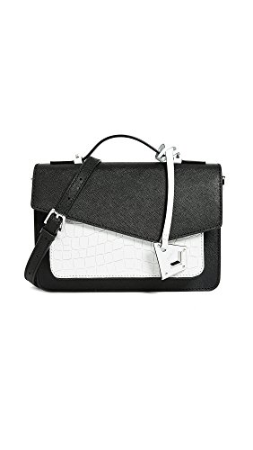 A structured Botkier cross-body bag in saffiano leather with polished hardware. Slim back pocket. The magnetic top flap opens to a lined, 3-compartment interior with one zip pocket and 2 card slots. Top handle and adjustable, optional shoulder strap. Dust bag included.Feature