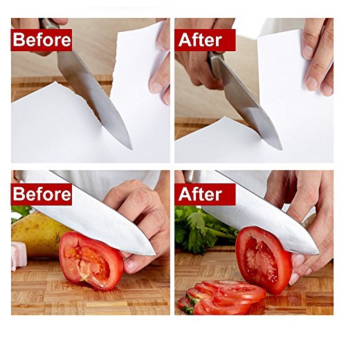 Widely Used: For a variety of knives sharpen, chef knife, slicing knife, chop bone knife, fruit knife, not suitable for serrated knives or scissors.