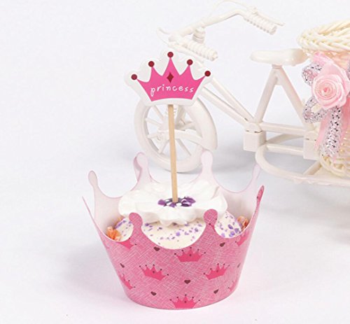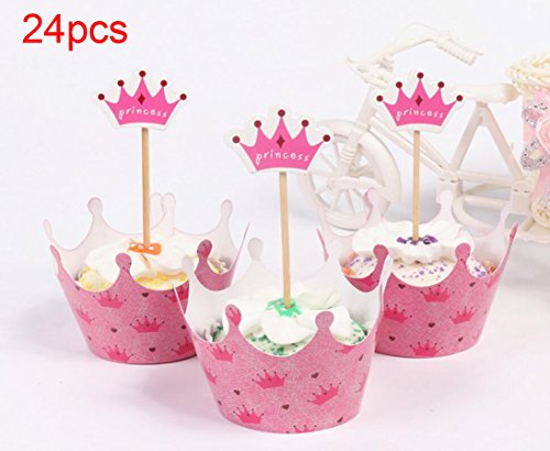 Pink Priness Crown Cupcake Party Pack for 24 Cupcakes Paper wrappers Cupcake Topper