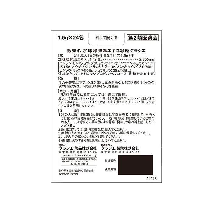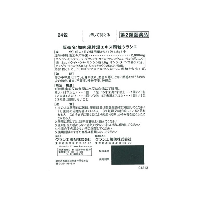 원본상품명: 【第2類品】加味脾湯エキス顆粒クラシエ 24包