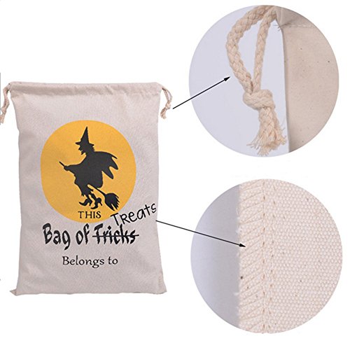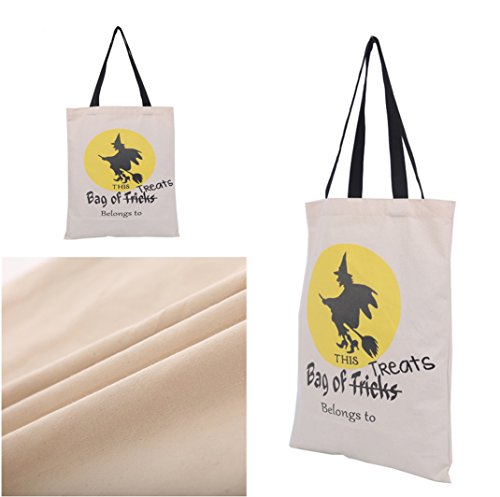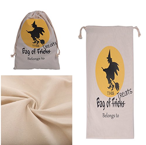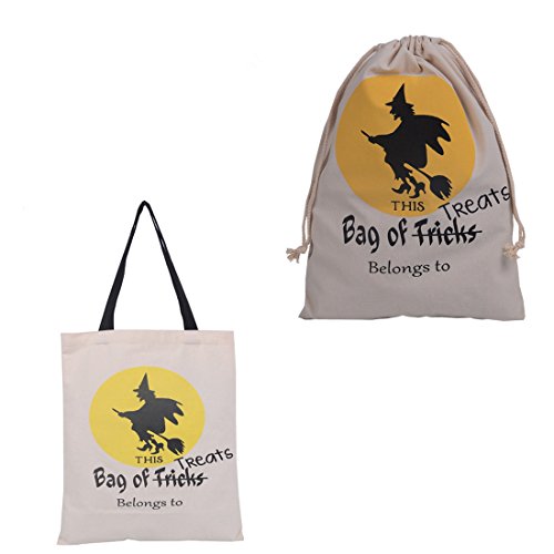 Halloween Eco Cotton Canvas Candy Gift Reusable Daily  Tote & Drawstring Bag Pack of 2 (Witch)