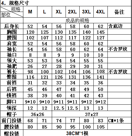 应用场合: 冷库 加油站 加气站 渔业打捞 尺码:M L XL 2XL 3XL 4XL 六个尺码可选