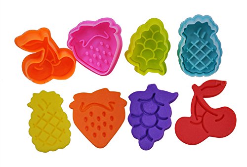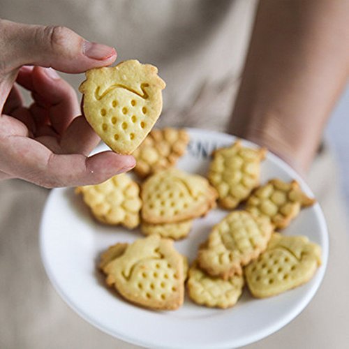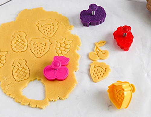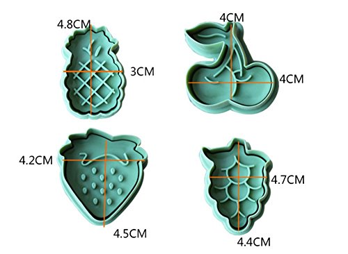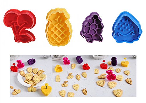 Cookie Cutter Embossing Mold Set By Garloy(4 Pack),Mini Christmas Fruit Theme Cute Cookies Cake Topper Sugar Craft Chocolate Plunger Cutter Mold,Spring-loaded Handle,Food Safe Plastic(Colors May Vary)