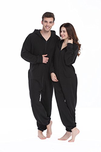 -. Title : partypajama Damen Herren Schwarz Fleece Kapuzen Einteiler einteiligen Schlafanzüge Kostüm