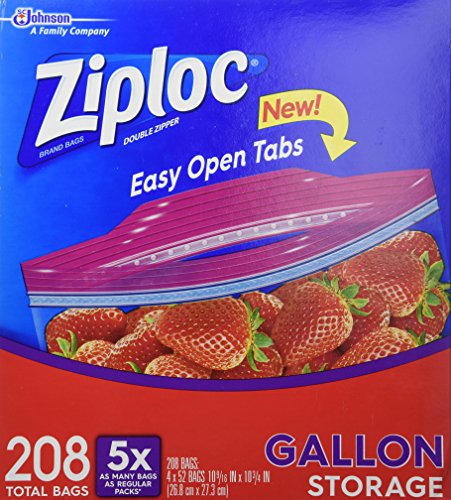 Ziploc Easy Open Tabs Storage Gallon Bags, 52 count(Pack of 4)