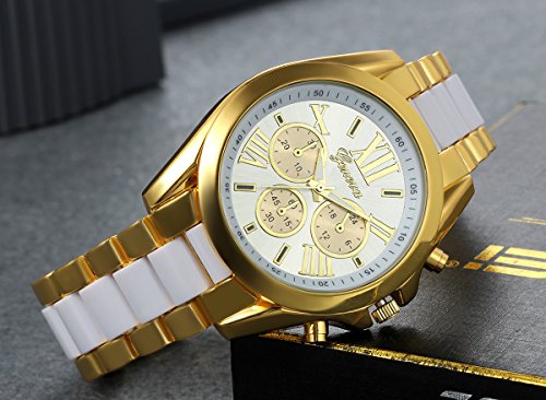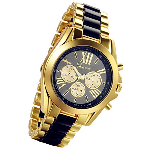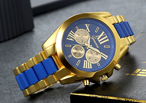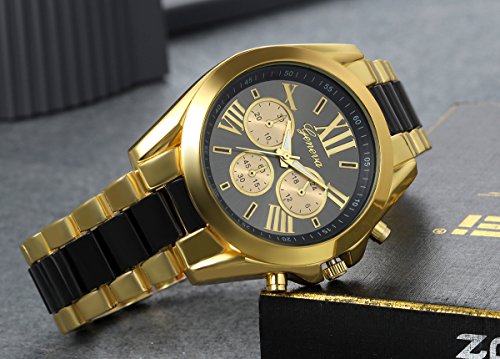 -. Title : Lancardo Luxury Men Stainless Steel Gold Dial Quartz Analog Bangle Wrist Watch with 3 Sub-Dials (3PCS)