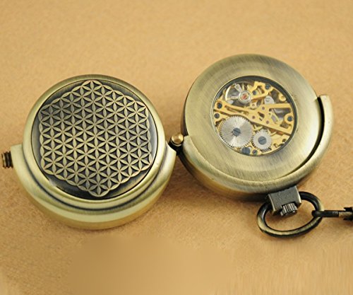 -. Title : VIGOROSO Men's Retro Archaize Bronze Unique Hide Carved Steampunk Free Chain Mechanical Pocket Watch in Gift Box