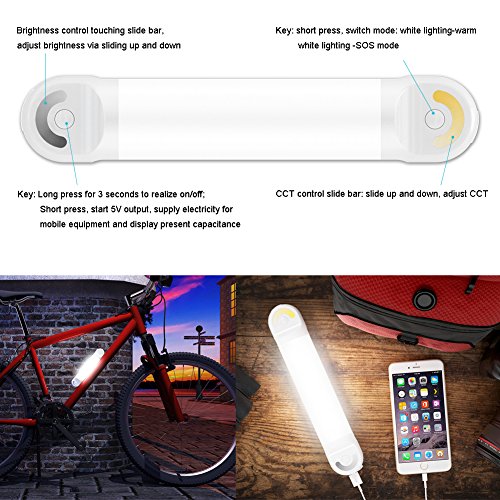 Signcomplex LED Flashlight Outdoor Lanterns Light Bar Dimmable and Tunable 5W Emergency Camping Light Table Light Portable Backup Power Bank Indoor and Outdoor Use-White and Warm White